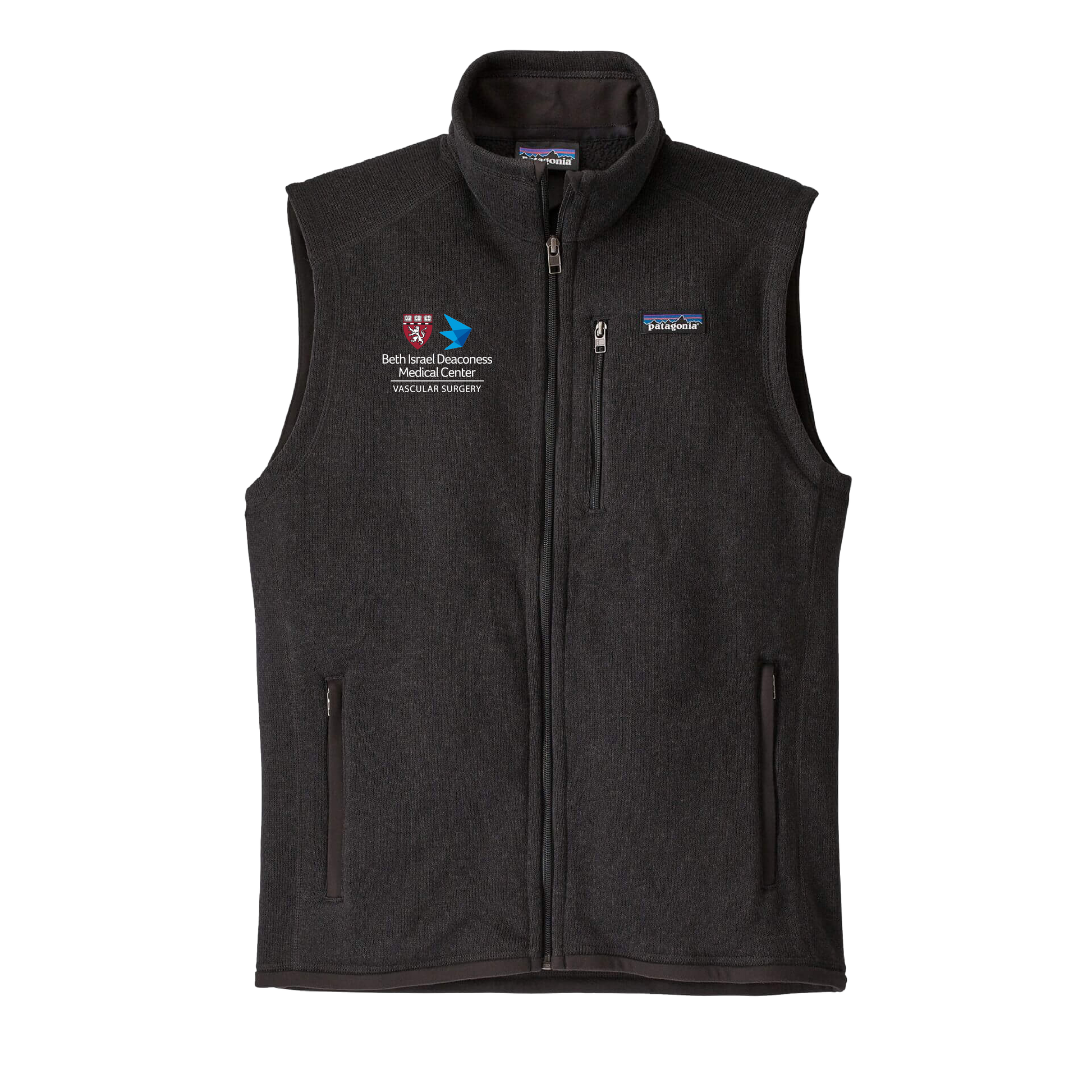 BIDMC Vascular Surgery logo embroidered on the right chest and the option to personalize underneath the logo.